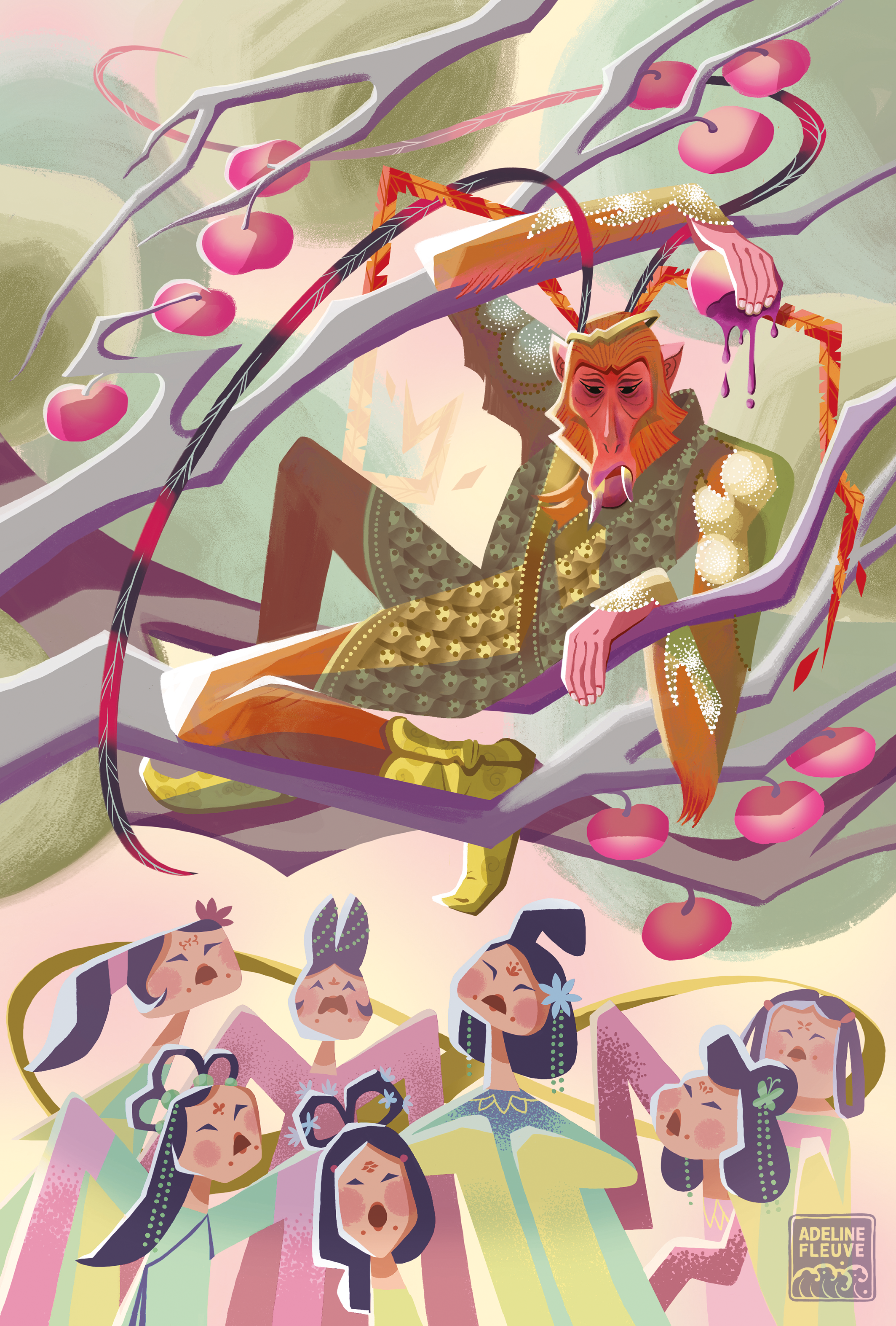 According to Chinese mythology, seven fairies discovered the Monkey King Sun Wukong eating the peaches of immortality in the heavenly orchard.